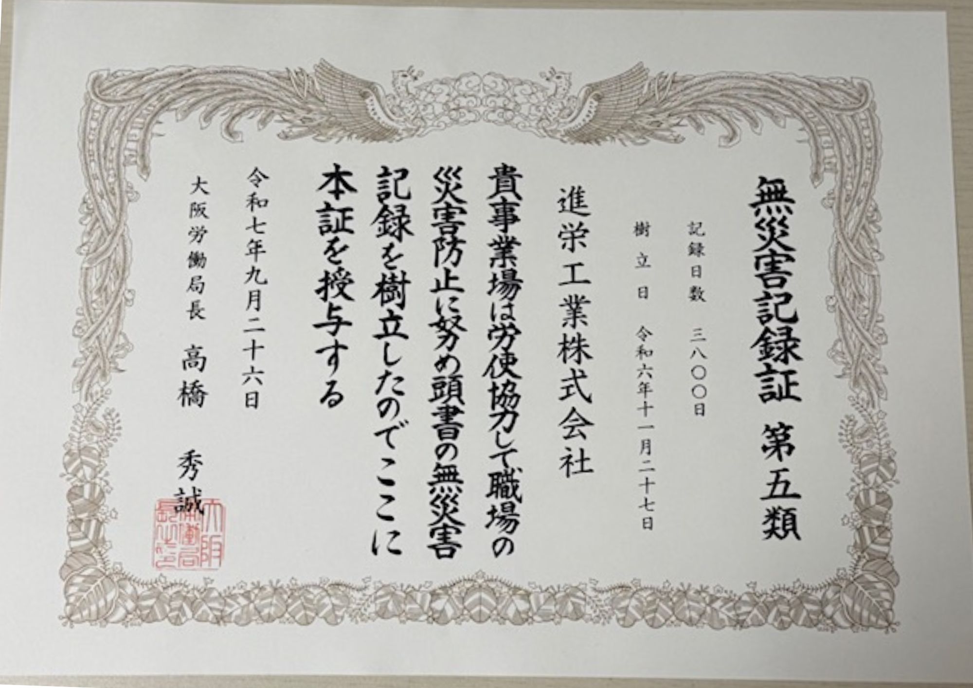 その中でもひとりひとりが安全第一の気持ちで取り組んでいけた結果だと思います